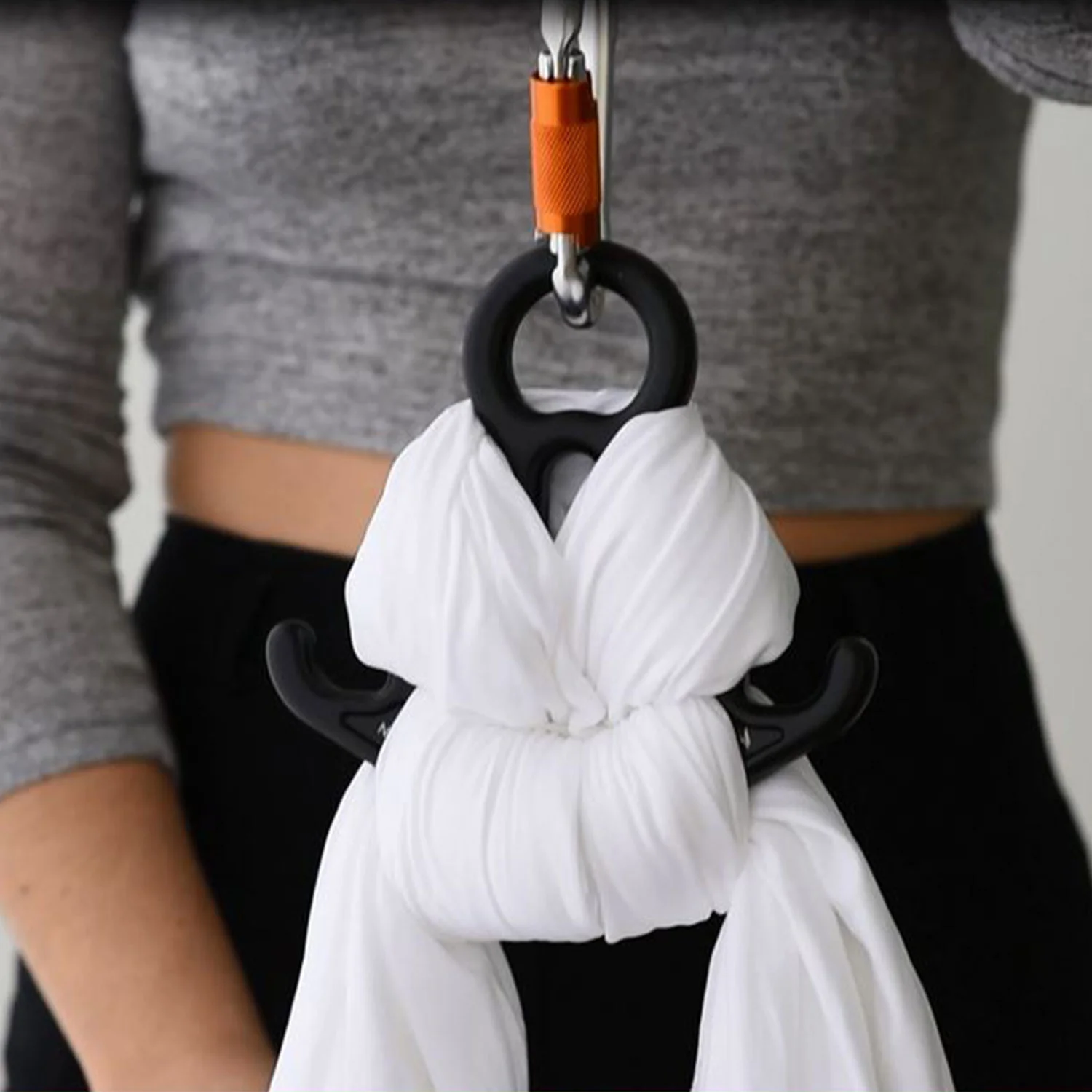 این قلاب معمولاً برای اسلایدها یا برای ورزشهای معلق استفاده می شود. در اریال دنس به عنوان وسیلهای برای قلاب کردن هموکها عالی است.